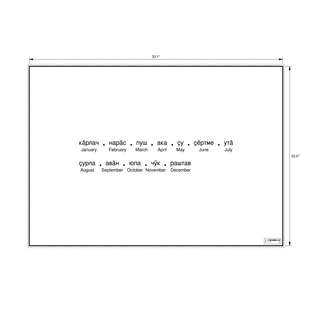 A poster of the months of the year in Chuvash (Уйăхсем) with English translations.