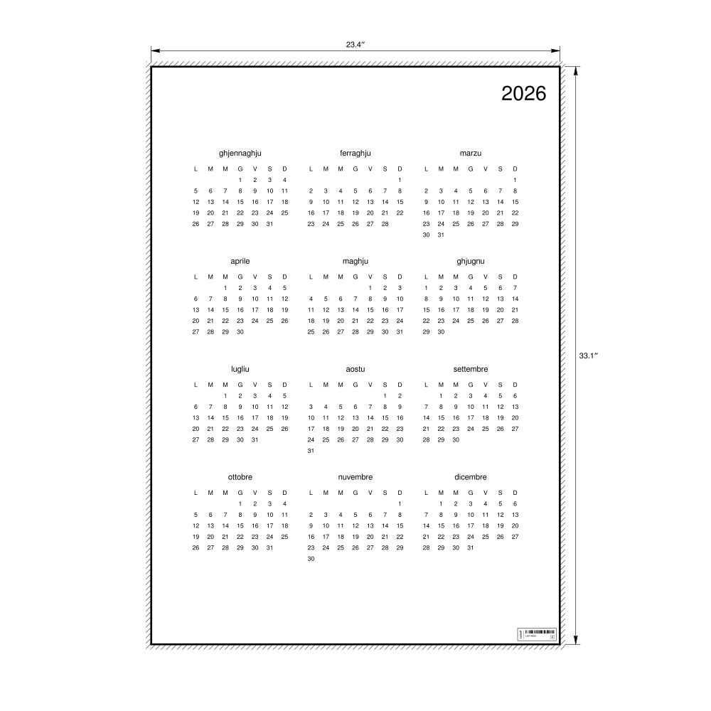 - Corsican heritage speakers and cultural connectors - For individuals seeking to maintain a connection to their history, ancestral roots, or the culture associated with the Corsican language, the calendar serves as a daily cultural marker. Use it in your home, office, library, or museum as a link to linguistic and cultural identity that integrates Corsican into your everyday life. Familiar language script and naming conventions may also provide a sense of home in a foreign environment.