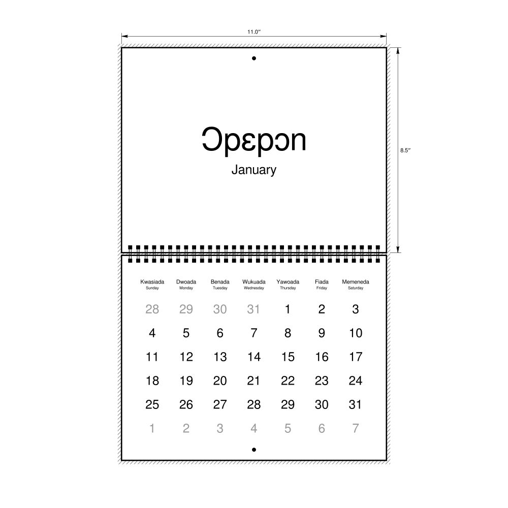 2026 Wall CalendarAkan/English-Labeled, Sunday-Start Layout, Wire-Bound, 11 x 8.5 in (27.9 x 21.6 cm)