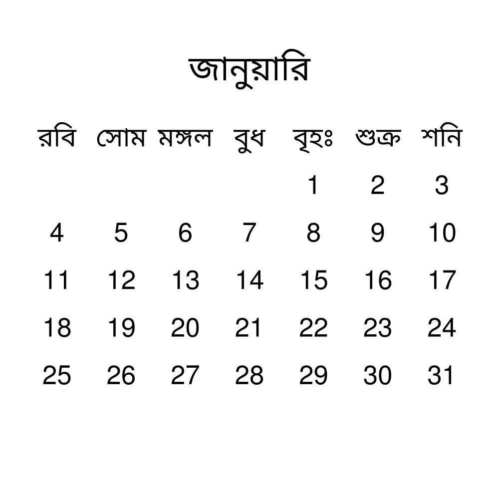 - Bengali heritage speakers and cultural connectors - For individuals seeking to maintain a connection to their history, ancestral roots, or the culture associated with the Bengali language, the calendar serves as a daily cultural marker. Use it in your home, office, library, or museum as a link to linguistic and cultural identity that integrates Bengali into your everyday life. Familiar language script and naming conventions may also provide a sense of home in a foreign environment.