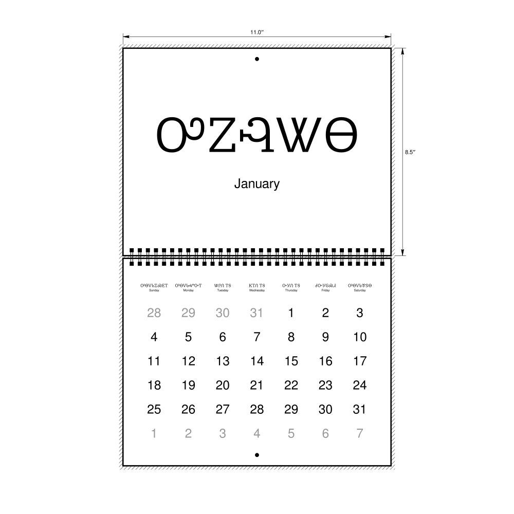 2026 Wall CalendarCherokee/English-Labeled, Sunday-Start Layout, Wire-Bound, 11 x 8.5 in (27.9 x 21.6 cm)