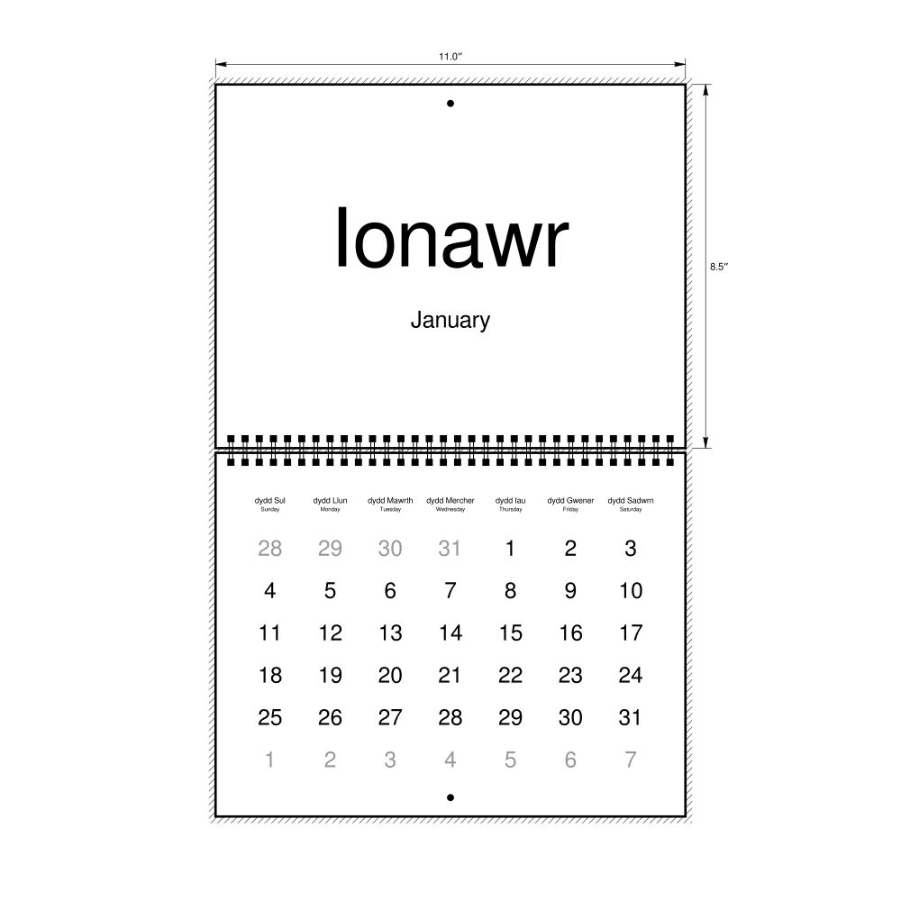 2026 Wall CalendarWelsh/English-Labeled, Sunday-Start Layout, Wire-Bound, 11 x 8.5 in (27.9 x 21.6 cm)