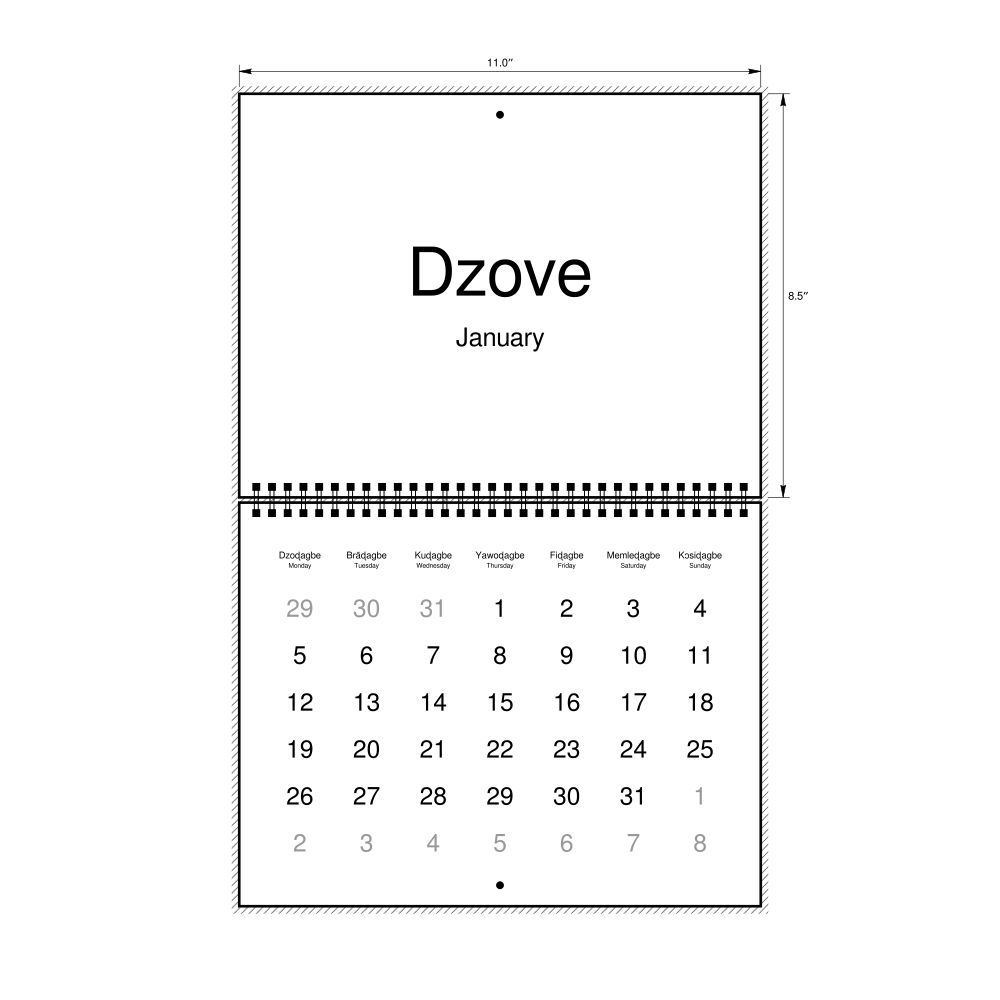 2026 Wall CalendarEwe/English-Labeled, Monday-Start Layout, Wire-Bound, 11 x 8.5 in (27.9 x 21.6 cm)