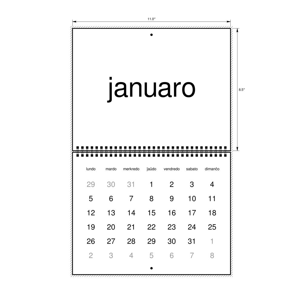 2026 Wall CalendarEsperanto-Labeled, Monday-Start Layout, Wire-Bound, 11 x 8.5 in (27.9 x 21.6 cm)