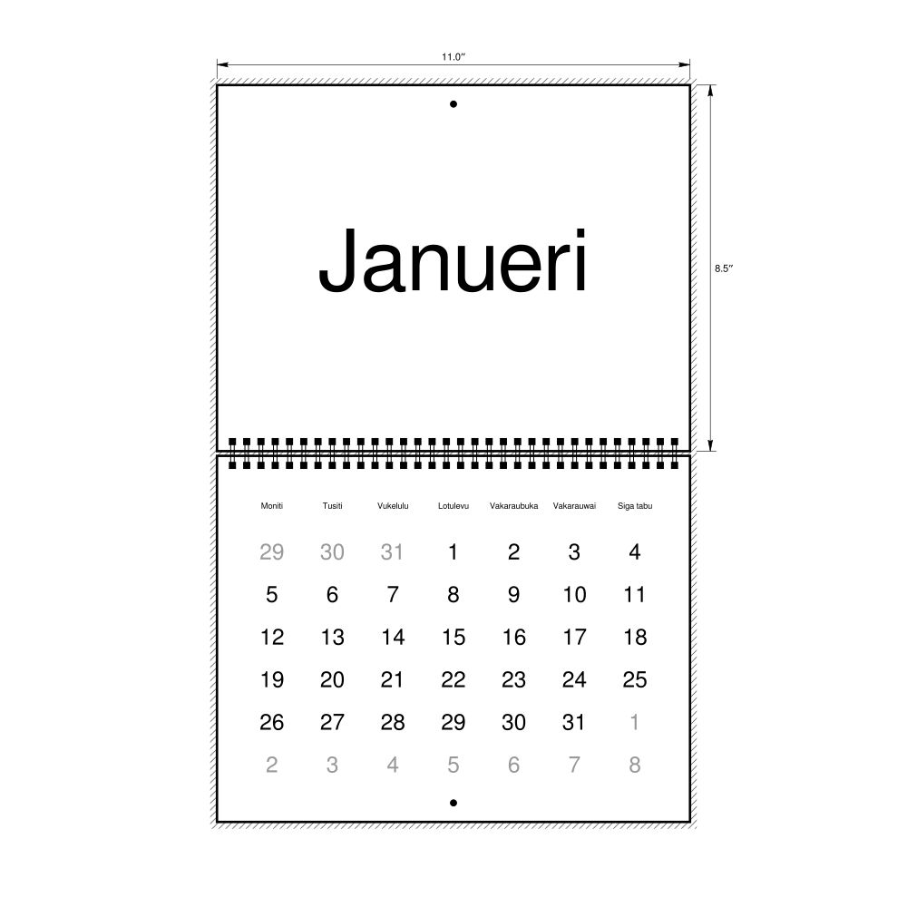 - Fijian heritage speakers and cultural connectors - For individuals seeking to maintain a connection to their history, ancestral roots, or the culture associated with the Fijian language, the calendar serves as a daily cultural marker. Use it in your home, office, library, or museum as a link to linguistic and cultural identity that integrates Fijian into your everyday life. Familiar language script and naming conventions may also provide a sense of home in a foreign environment.