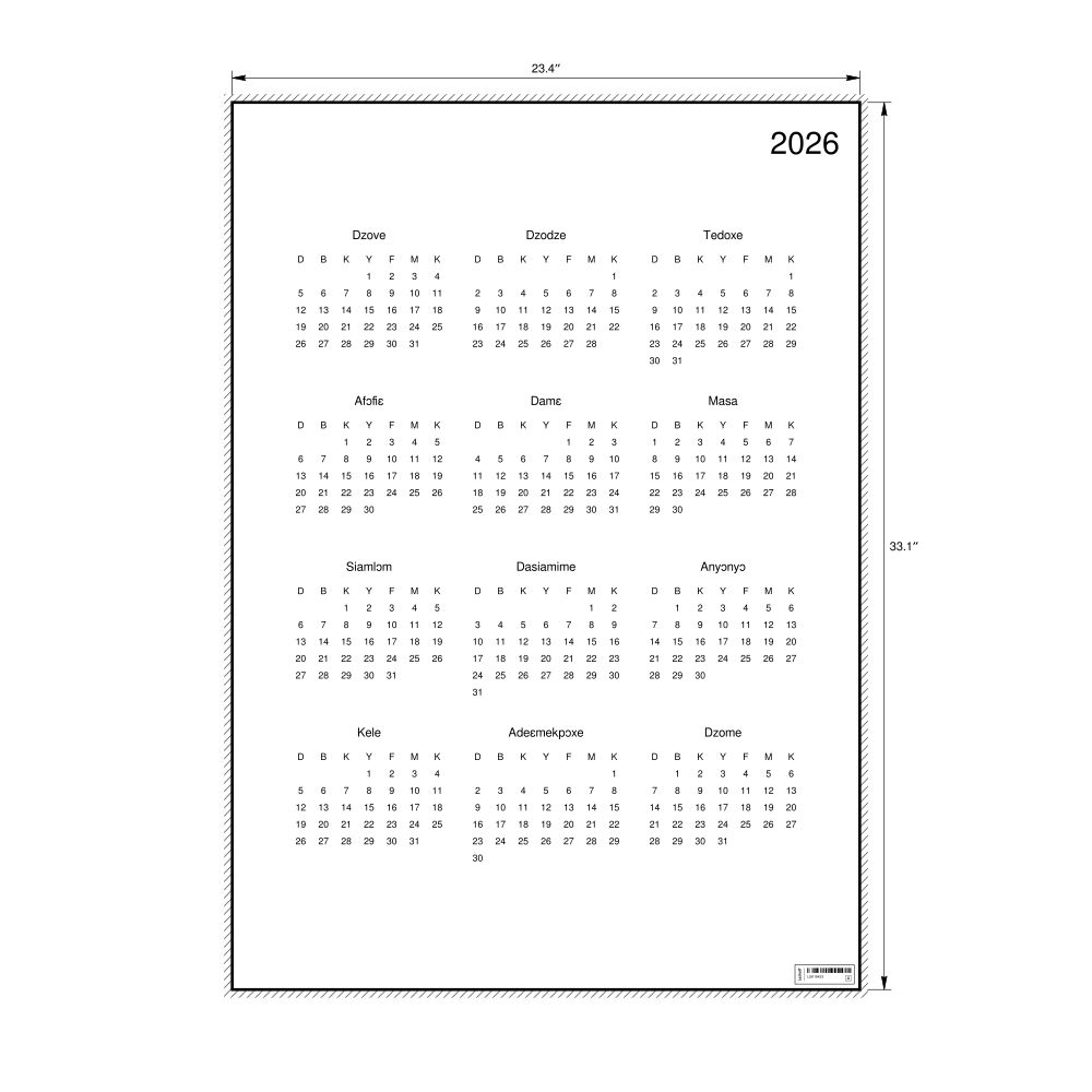 • Ewe heritage speakers and cultural connectors - For individuals seeking to maintain a connection to their history, ancestral roots, or the culture associated with the Ewe language, the calendar serves as a daily cultural marker. Use it in your home, office, library, or museum as a link to linguistic and cultural identity that integrates Ewe into your everyday life. Familiar language script and naming conventions may also provide a sense of home in a foreign environment.