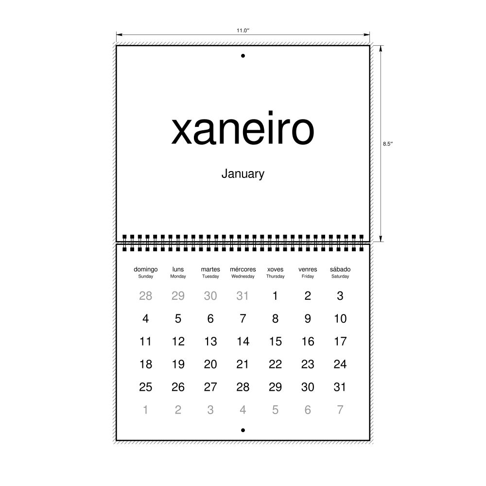 2026 Wall CalendarGalician/English-Labeled, Sunday-Start Layout, Wire-Bound, 11 x 8.5 in (27.9 x 21.6 cm)
