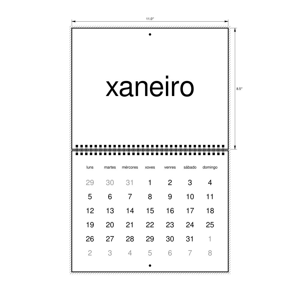- Gift buyers - Choose this calendar if you are looking for specific, personalized gift ideas for friends and colleagues who have an affinity for the Galician language or its culture. A niche, thoughtful alternative to generic stationery, this Galician calendar demonstrates that you understand the recipient's specific interest in the language and culture.