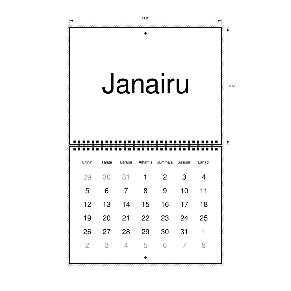 - Hausa heritage speakers and cultural connectors - For individuals seeking to maintain a connection to their history, ancestral roots, or the culture associated with the Hausa language, the calendar serves as a daily cultural marker. Use it in your home, office, library, or museum as a link to linguistic and cultural identity that integrates Hausa into your everyday life. Familiar language script and naming conventions may also provide a sense of home in a foreign environment.