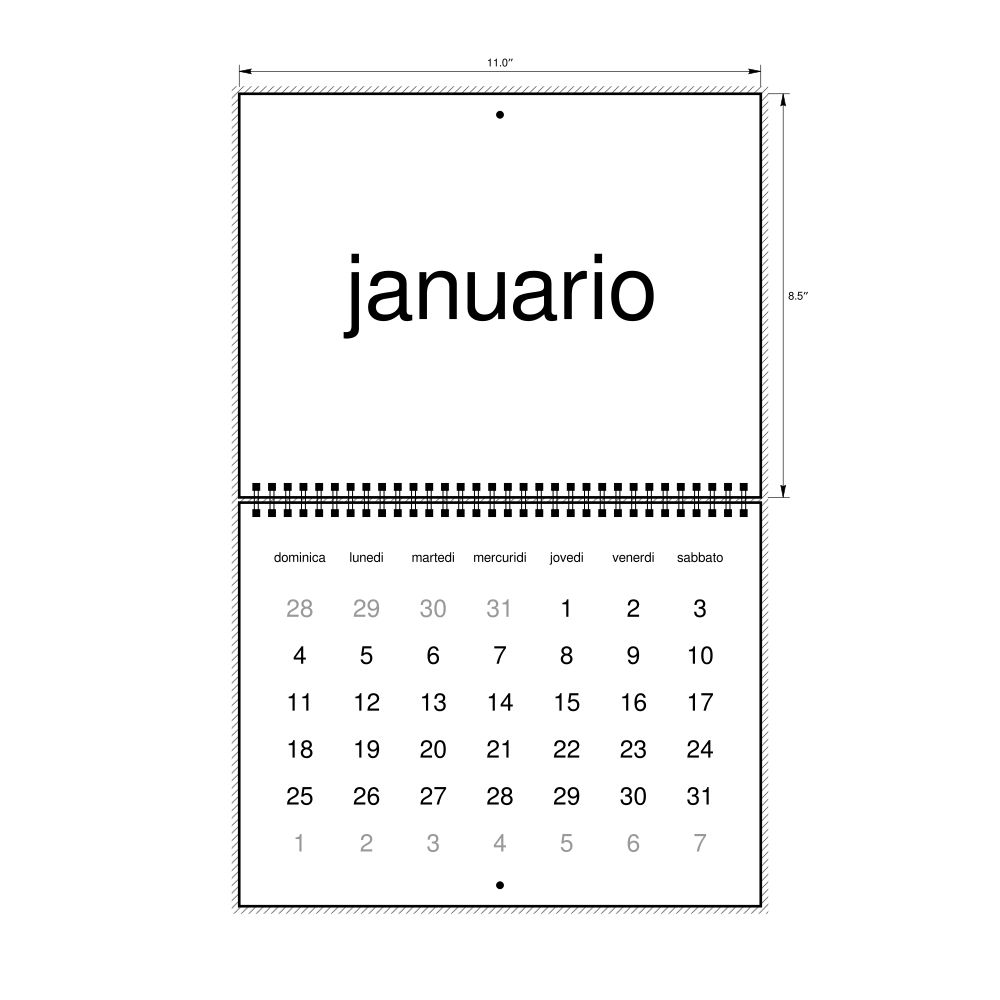 2027 Wall Calendar, Interlingua/English-Labeled, Monday-Start Layout, Wire-Bound, 11 x 8.5 in (27.9 x 21.6 cm)