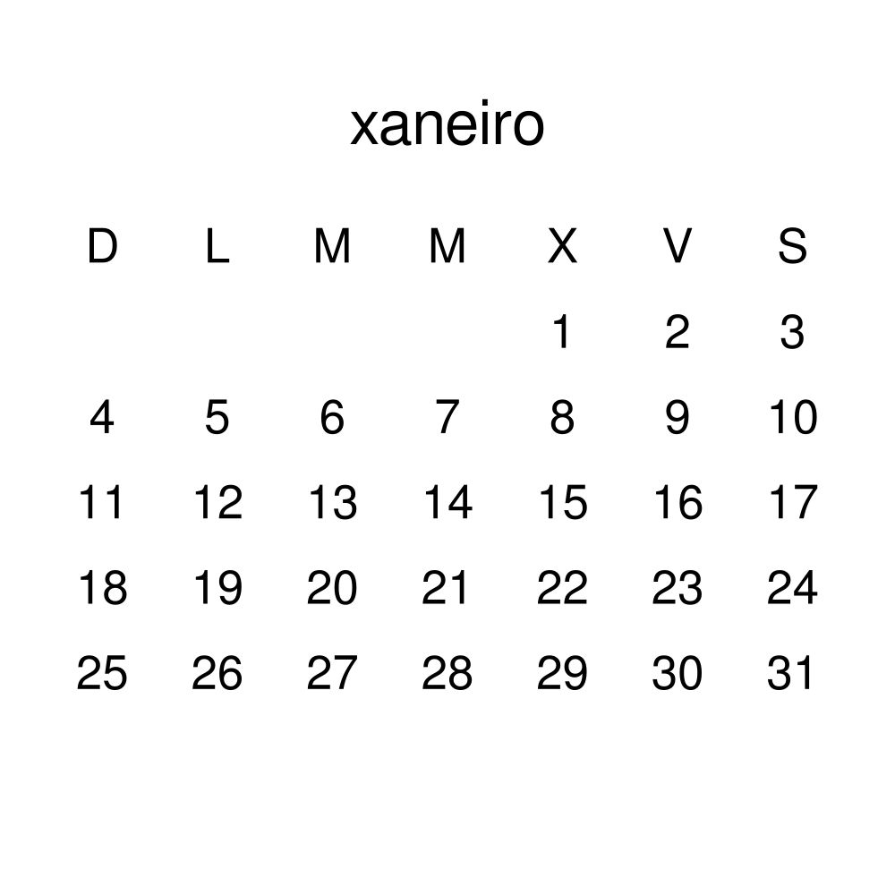- Galician speakers and enthusiasts - Choose this calendar if you are looking for a simple, localized calendar in the Galician language. Use it in your home, office, or classroom as a regular calendar.