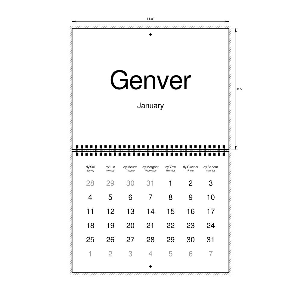2026 Wall CalendarCornish/English-Labeled, Sunday-Start Layout, Wire-Bound, 11 x 8.5 in (27.9 x 21.6 cm)