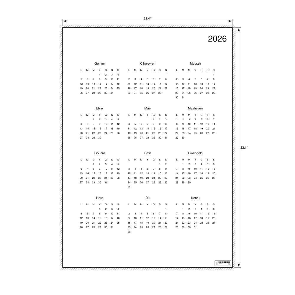 - Breton heritage speakers and cultural connectors - For individuals seeking to maintain a connection to their history, ancestral roots, or the culture associated with the Breton language, the calendar serves as a daily cultural marker. Use it in your home, office, library, or museum as a link to linguistic and cultural identity that integrates Breton into your everyday life. Familiar language script and naming conventions may also provide a sense of home in a foreign environment.