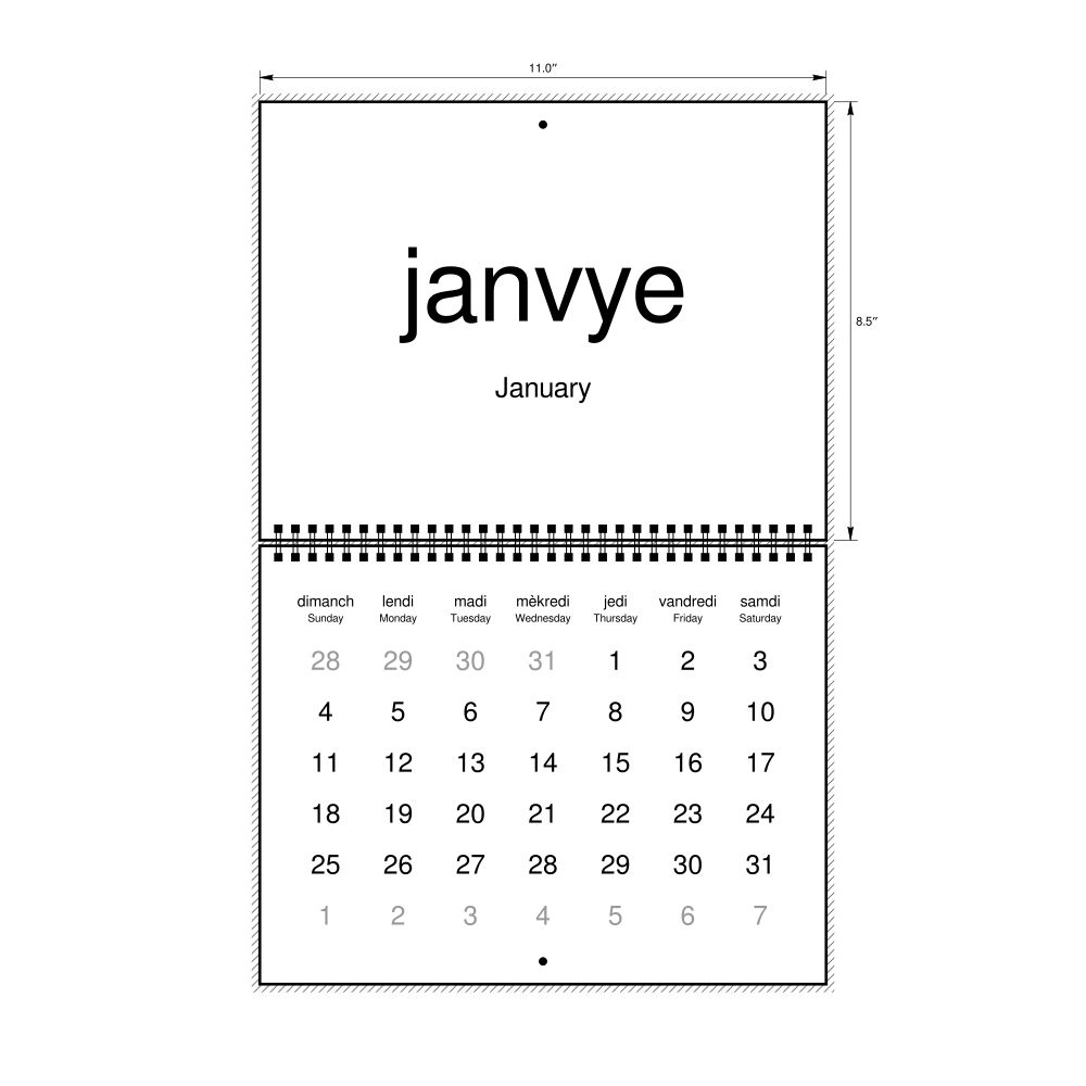 2026 Wall CalendarHaitian Creole/English-Labeled, Sunday-Start Layout, Wire-Bound, 11 x 8.5 in (27.9 x 21.6 cm)