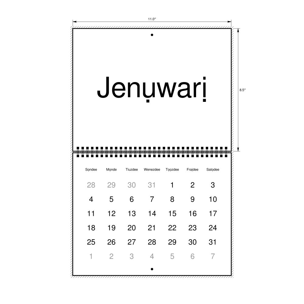 - Linguistics enthusiasts and polyglots - For "language geeks" interested in comparative linguistics or the mechanics of different languages and who value the aesthetic differences in scripts, orthography, and typography of different languages, the Igbo calendar serves as an object of intellectual interest. You can collect calendars for various languages to compare their linguistic roots (e.g., comparing Romance languages vs. Slavic languages). Leskoff's calendars are characterized by specific typographic choices that highlight the orthography and script unique to the target language. Think correct usage of diacritics, characters, and directional writing (left-to-right vs. right-to-left). The minimalist design focuses on legibility and aesthetic appeal of the script itself.