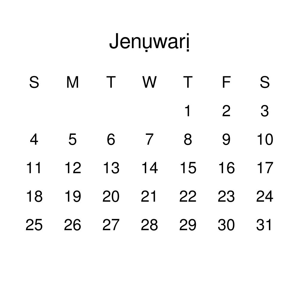 - Linguistics enthusiasts and polyglots - For "language geeks" interested in comparative linguistics or the mechanics of different languages and who value the aesthetic differences in scripts, orthography, and typography of different languages, the Igbo calendar serves as an object of intellectual interest. You can collect calendars for various languages to compare their linguistic roots (e.g., comparing Romance languages vs. Slavic languages). Leskoff's calendars are characterized by specific typographic choices that highlight the orthography and script unique to the target language. Think correct usage of diacritics, characters, and directional writing (left-to-right vs. right-to-left). The minimalist design focuses on legibility and aesthetic appeal of the script itself.