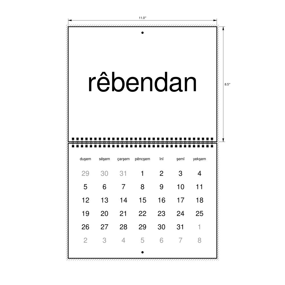 • Kurdish heritage speakers and cultural connectors - For individuals seeking to maintain a connection to their history, ancestral roots, or the culture associated with the Kurdish language, the calendar serves as a daily cultural marker. Use it in your home, office, library, or museum as a link to linguistic and cultural identity that integrates Kurdish into your everyday life. Familiar language script and naming conventions may also provide a sense of home in a foreign environment.