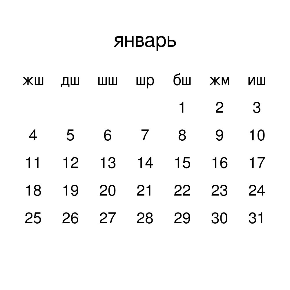 - Kyrgyz heritage speakers and cultural connectors - For individuals seeking to maintain a connection to their history, ancestral roots, or the culture associated with the Kyrgyz language, the calendar serves as a daily cultural marker. Use it in your home, office, library, or museum as a link to linguistic and cultural identity that integrates Kyrgyz into your everyday life. Familiar language script and naming conventions may also provide a sense of home in a foreign environment.