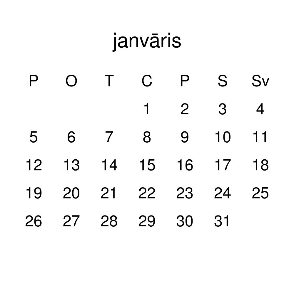 • Latvian heritage speakers and cultural connectors - For individuals seeking to maintain a connection to their history, ancestral roots, or the culture associated with the Latvian language, the calendar serves as a daily cultural marker. Use it in your home, office, library, or museum as a link to linguistic and cultural identity that integrates Latvian into your everyday life. Familiar language script and naming conventions may also provide a sense of home in a foreign environment.