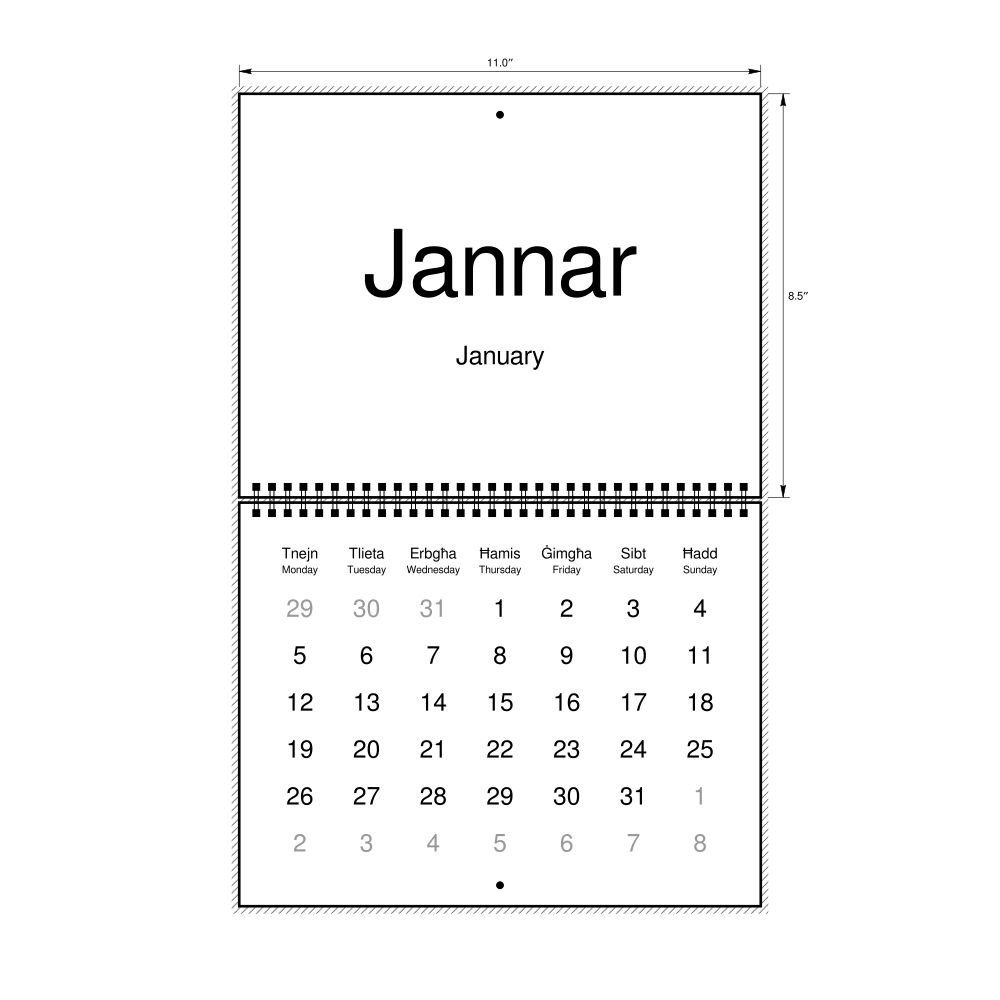 2026 Wall CalendarMaltese/English-Labeled, Monday-Start Layout, Wire-Bound, 11 x 8.5 in (27.9 x 21.6 cm)