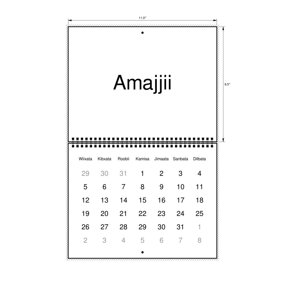 - Oromo heritage speakers and cultural connectors - For individuals seeking to maintain a connection to their history, ancestral roots, or the culture associated with the Oromo language, the calendar serves as a daily cultural marker. Use it in your home, office, library, or museum as a link to linguistic and cultural identity that integrates Oromo into your everyday life. Familiar language script and naming conventions may also provide a sense of home in a foreign environment.