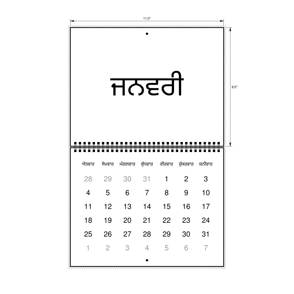 2026 Wall Calendar, Punjabi-Labeled, Sunday-Start Layout, Wire-Bound, 11 x 8.5 in (27.9 x 21.6 cm)