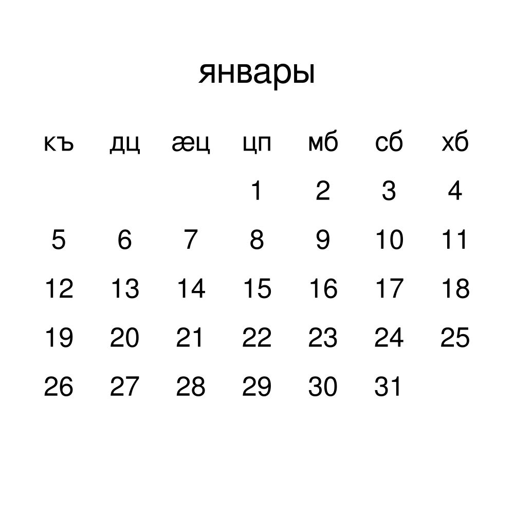 - Linguistics enthusiasts and polyglots - For "language geeks" interested in comparative linguistics or the mechanics of different languages and who value the aesthetic differences in scripts, orthography, and typography of different languages, the Ossetian calendar serves as an object of intellectual interest. You can collect calendars for various languages to compare their linguistic roots (e.g., comparing Romance languages vs. Slavic languages). Leskoff's calendars are characterized by specific typographic choices that highlight the orthography and script unique to the target language. Think correct usage of diacritics, characters, and directional writing (left-to-right vs. right-to-left). The minimalist design focuses on legibility and aesthetic appeal of the script itself.