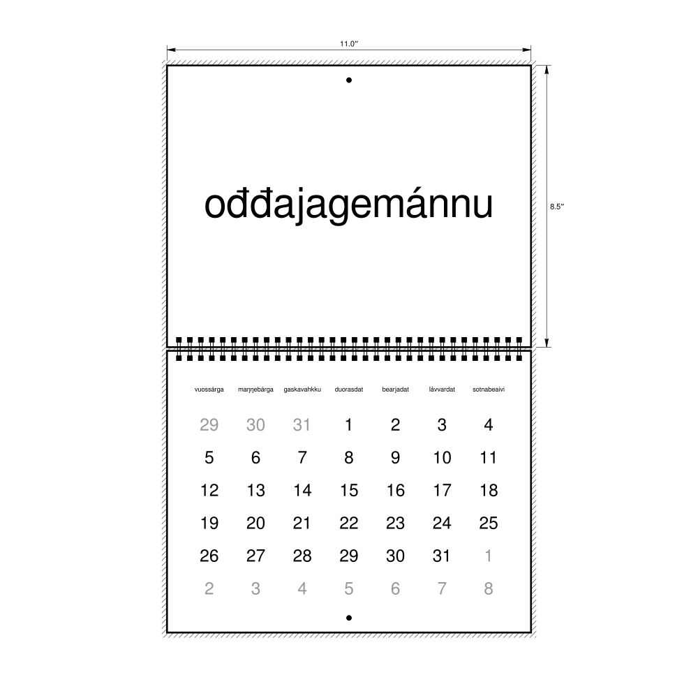 - Gift buyers - Choose this calendar if you are looking for specific, personalized gift ideas for friends and colleagues who have an affinity for the Northern Sámi language or its culture. A niche, thoughtful alternative to generic stationery, this Northern Sámi calendar demonstrates that you understand the recipient's specific interest in the language and culture.