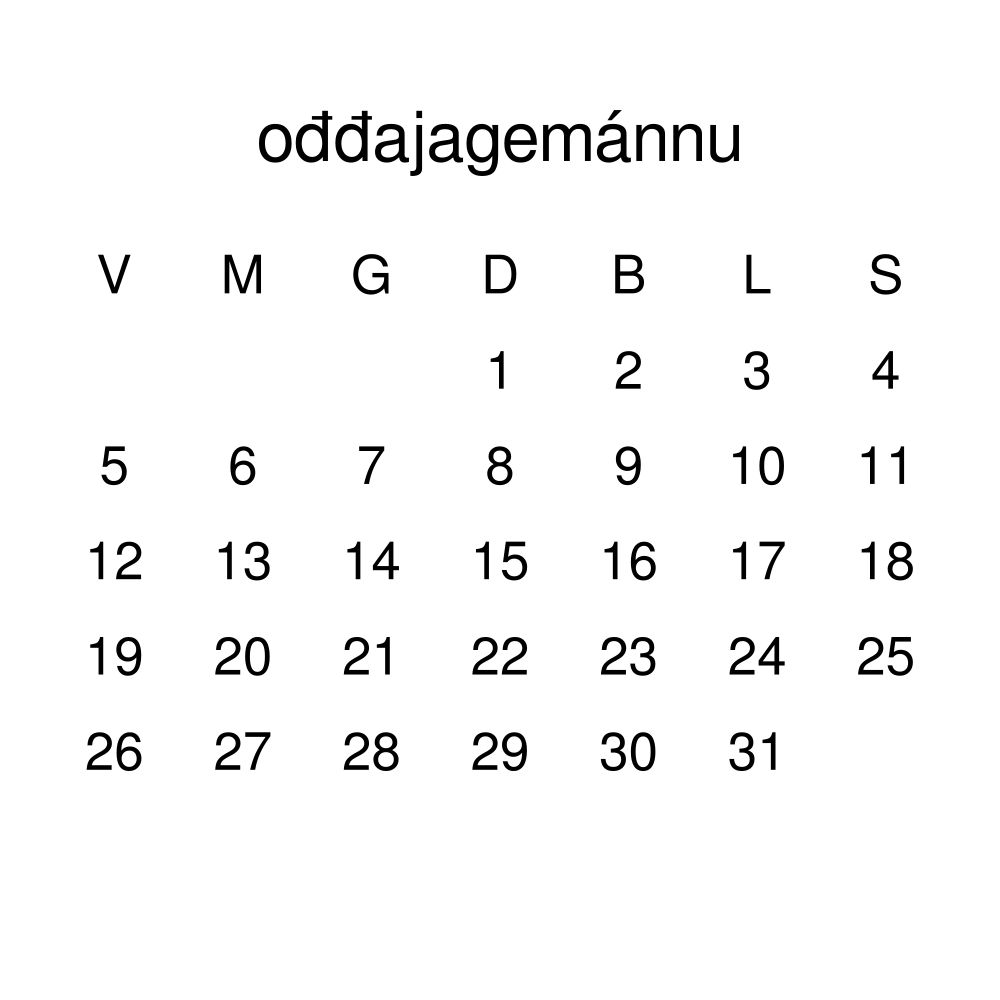 - Linguistics enthusiasts and polyglots - For "language geeks" interested in comparative linguistics or the mechanics of different languages and who value the aesthetic differences in scripts, orthography, and typography of different languages, the Northern Sámi calendar serves as an object of intellectual interest. You can collect calendars for various languages to compare their linguistic roots (e.g., comparing Romance languages vs. Slavic languages). Leskoff's calendars are characterized by specific typographic choices that highlight the orthography and script unique to the target language. Think correct usage of diacritics, characters, and directional writing (left-to-right vs. right-to-left). The minimalist design focuses on legibility and aesthetic appeal of the script itself.