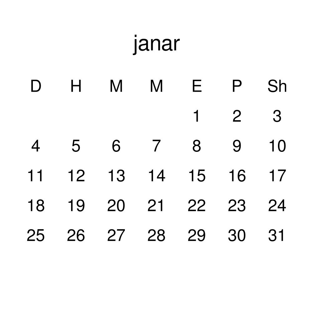 • Linguistics enthusiasts and polyglots - For "language geeks" interested in comparative linguistics or the mechanics of different languages and who value the aesthetic differences in scripts, orthography, and typography of different languages, the Albanian calendar serves as an object of intellectual interest. You can collect calendars for various languages to compare their linguistic roots (e.g., comparing Romance languages vs. Slavic languages). Leskoff's calendars are characterized by specific typographic choices that highlight the orthography and script unique to the target language. Think correct usage of diacritics, characters, and directional writing (left-to-right vs. right-to-left). The minimalist design focuses on legibility and aesthetic appeal of the script itself.