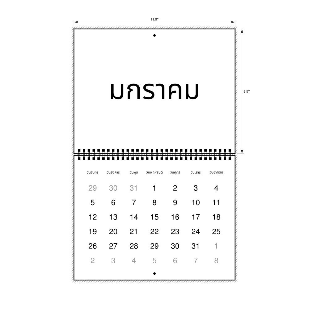 2026 Wall Calendar, Thai-Labeled, Monday-Start Layout, Wire-Bound, 11 x 8.5 in (27.9 x 21.6 cm)