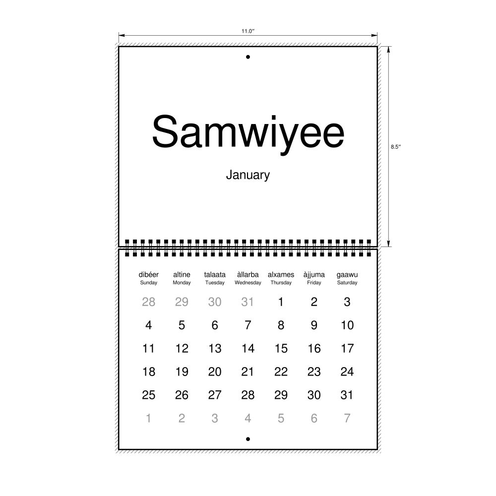 2026 Wall CalendarWolof/English-Labeled, Sunday-Start Layout, Wire-Bound, 11 x 8.5 in (27.9 x 21.6 cm)