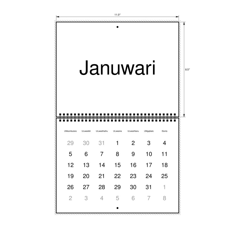 - Zulu heritage speakers and cultural connectors - For individuals seeking to maintain a connection to their history, ancestral roots, or the culture associated with the Zulu language, the calendar serves as a daily cultural marker. Use it in your home, office, library, or museum as a link to linguistic and cultural identity that integrates Zulu into your everyday life. Familiar language script and naming conventions may also provide a sense of home in a foreign environment.