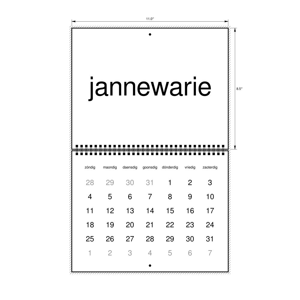 2026 Wall Calendar, Limburgish-Labeled, Sunday-Start Layout, Wire-Bound, 11 x 8.5 in (27.9 x 21.6 cm)