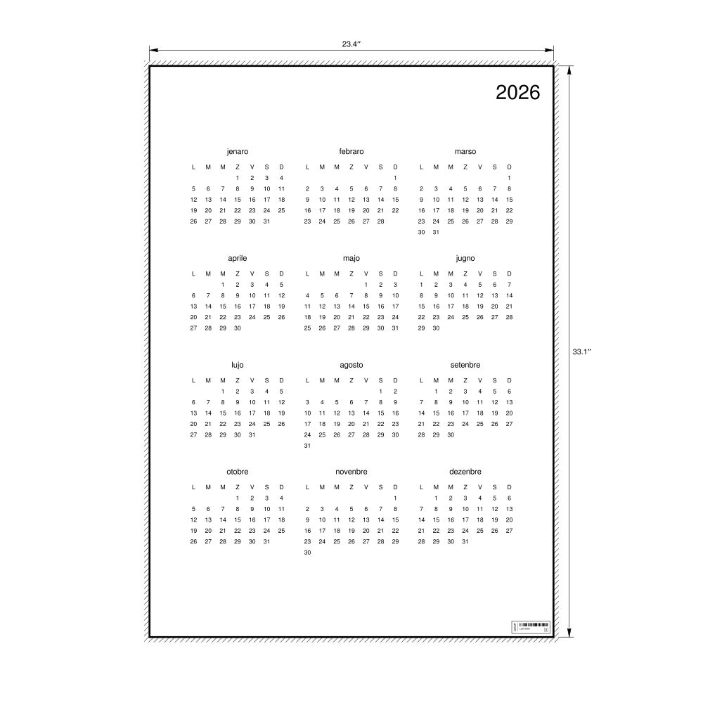 • Linguistics enthusiasts and polyglots - For "language geeks" interested in comparative linguistics or the mechanics of different languages and who value the aesthetic differences in scripts, orthography, and typography of different languages, the Venetian calendar serves as an object of intellectual interest. You can collect calendars for various languages to compare their linguistic roots (e.g., comparing Romance languages vs. Slavic languages). Leskoff's calendars are characterized by specific typographic choices that highlight the orthography and script unique to the target language. Think correct usage of diacritics, characters, and directional writing (left-to-right vs. right-to-left). The minimalist design focuses on legibility and aesthetic appeal of the script itself.