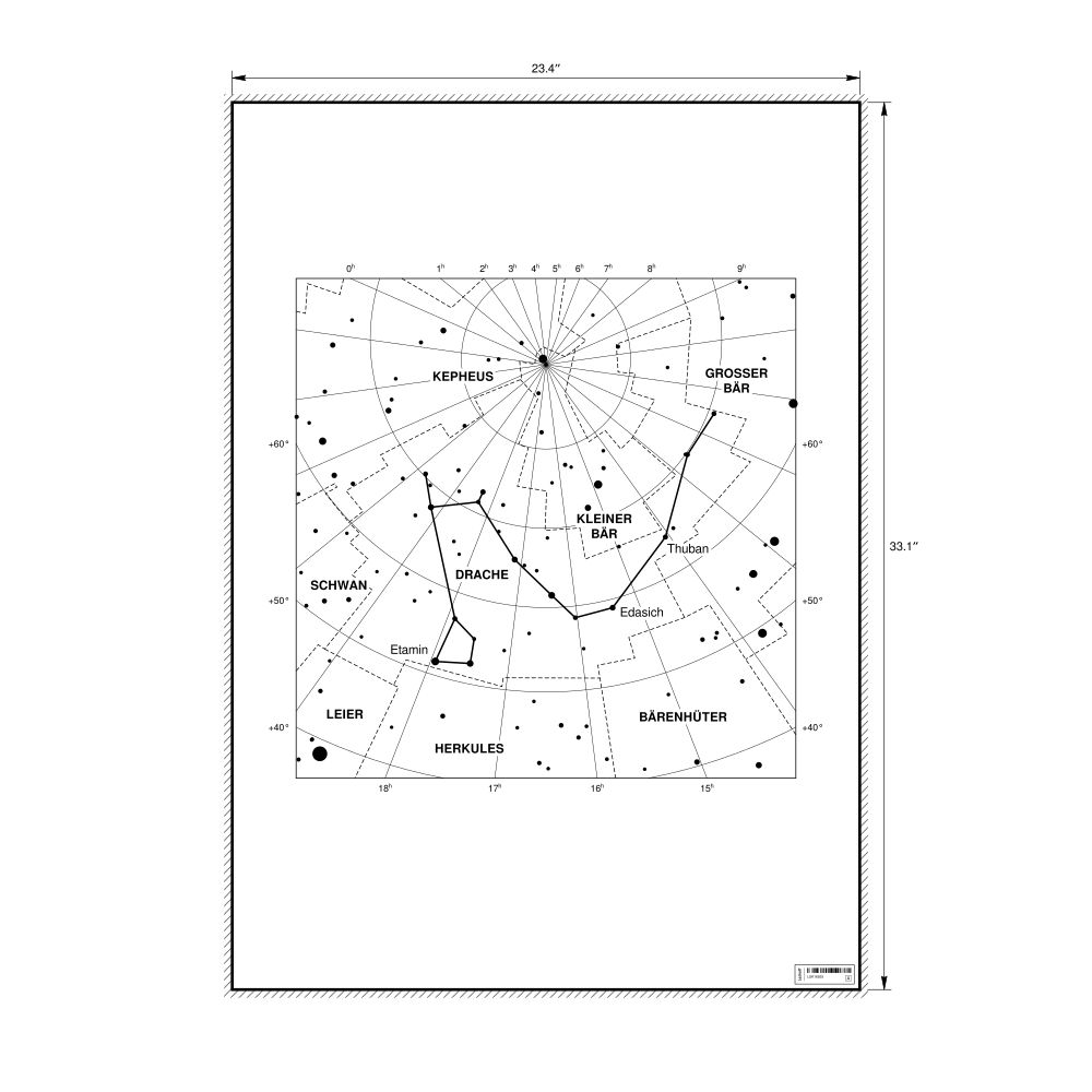 A poster featuring the Draco constellation chart in German (Drache).