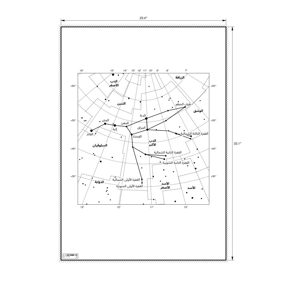 A poster featuring the Ursa Major constellation chart in Arabic (الدب الأكبر).