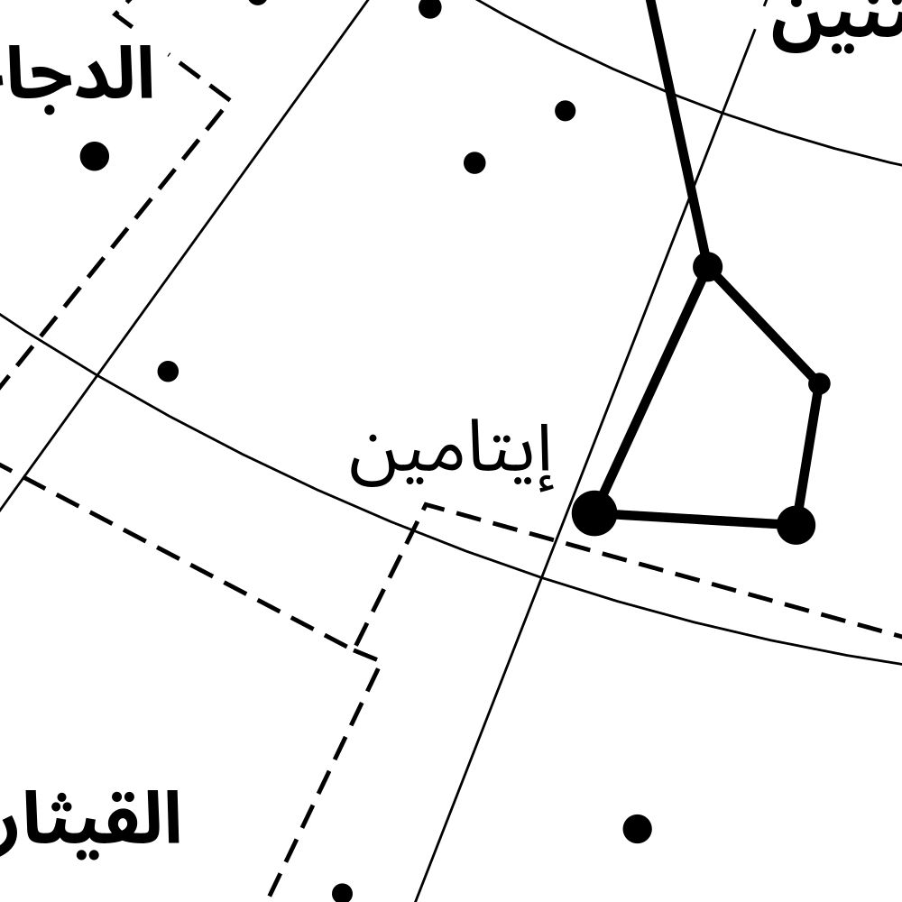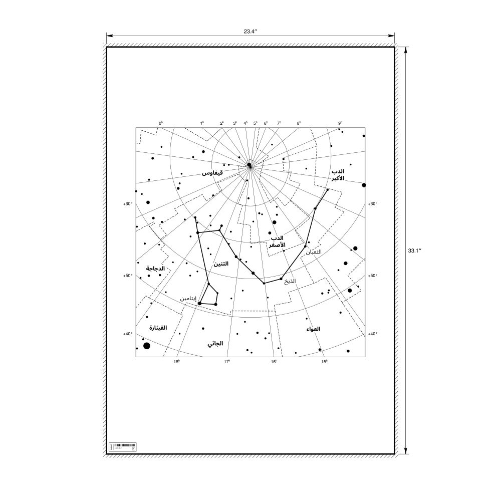A poster featuring the Draco constellation chart in Arabic (التنين).