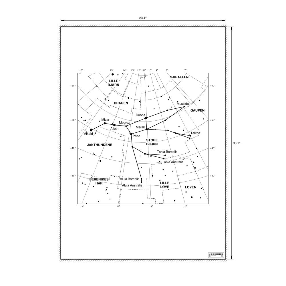 A poster featuring the Ursa Major constellation chart in Norwegian (Store bjørn).