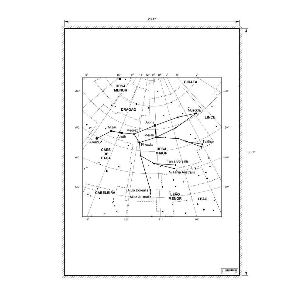 A poster featuring the Ursa Major constellation chart in Portuguese (Brazil) (Ursa maior).