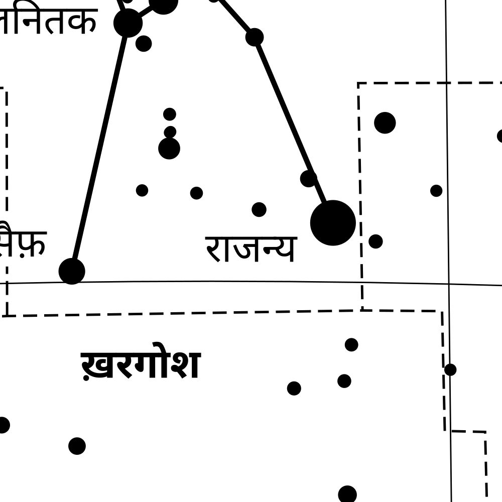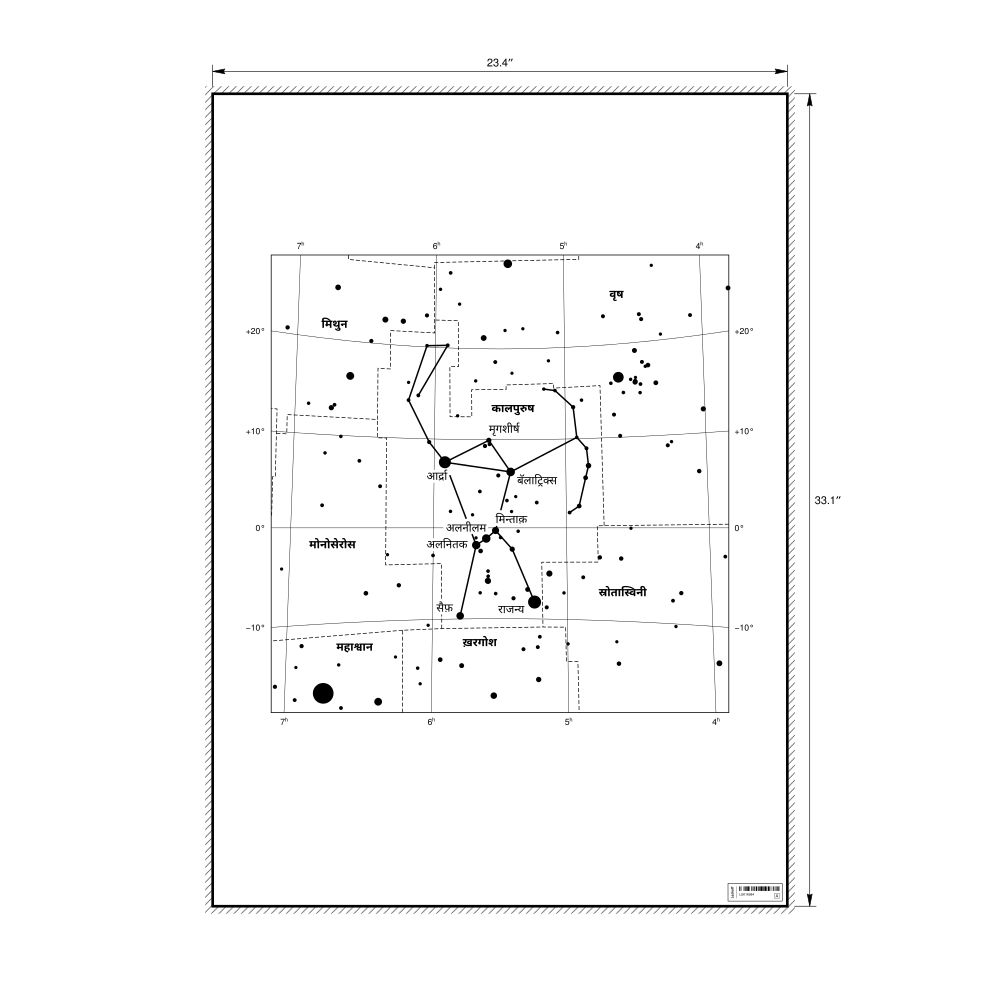 A poster featuring the Orion constellation chart in Hindi (कालपुरुष).
