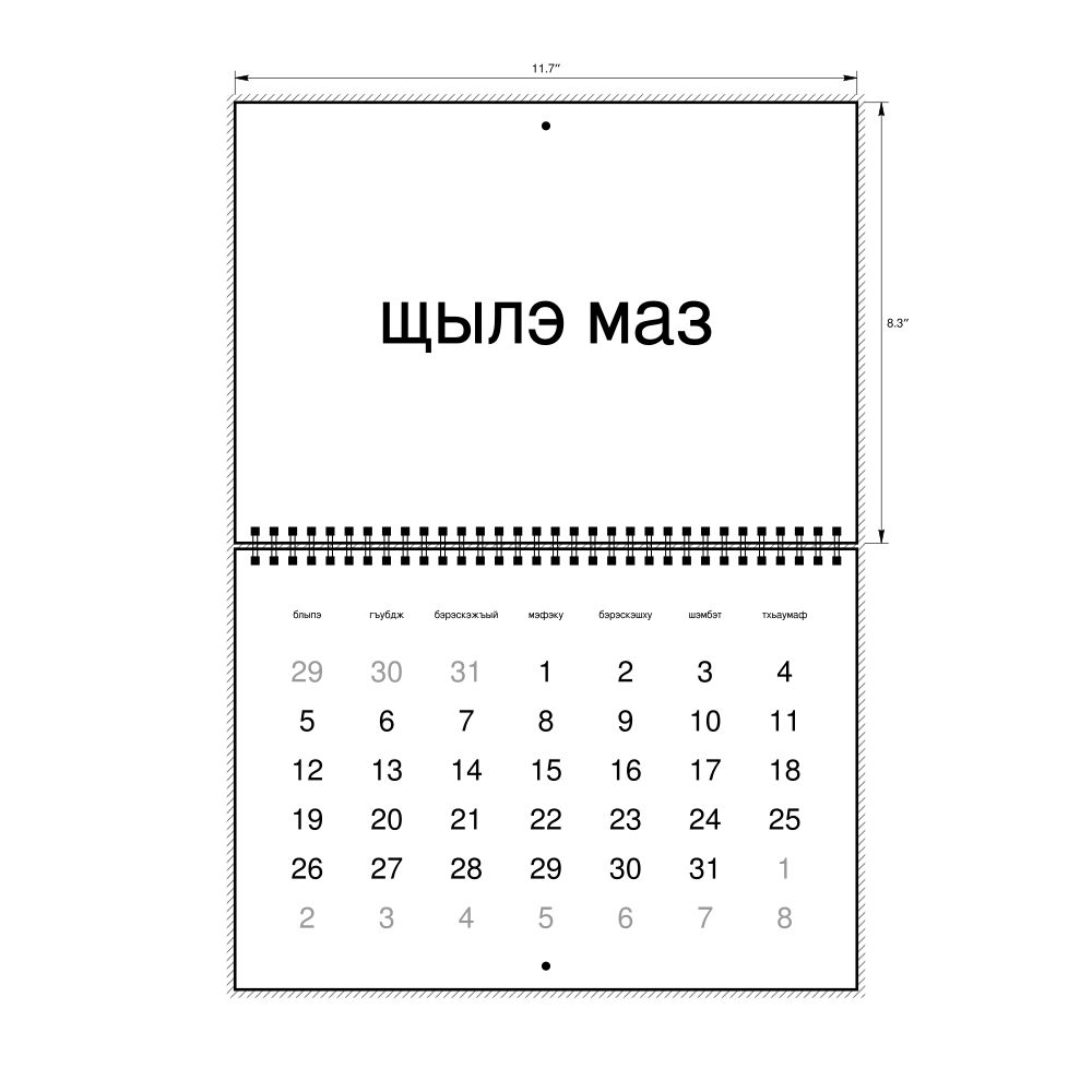 • Linguistics enthusiasts and polyglots - For "language geeks" interested in comparative linguistics or the mechanics of different languages and who value the aesthetic differences in scripts, orthography, and typography of different languages, the Adyghe calendar serves as an object of intellectual interest. You can collect calendars for various languages to compare their linguistic roots (e.g., comparing Romance languages vs. Slavic languages). Leskoff's calendars are characterized by specific typographic choices that highlight the orthography and script unique to the target language. Think correct usage of diacritics, characters, and directional writing (left-to-right vs. right-to-left). The minimalist design focuses on legibility and aesthetic appeal of the script itself.
