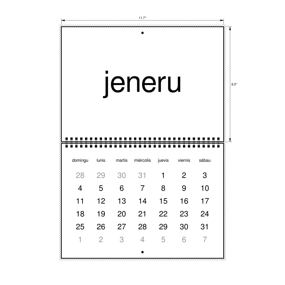 - Linguistics enthusiasts and polyglots - For "language geeks" interested in comparative linguistics or the mechanics of different languages and who value the aesthetic differences in scripts, orthography, and typography of different languages, the Extremaduran calendar serves as an object of intellectual interest. You can collect calendars for various languages to compare their linguistic roots (e.g., comparing Romance languages vs. Slavic languages). Leskoff's calendars are characterized by specific typographic choices that highlight the orthography and script unique to the target language. Think correct usage of diacritics, characters, and directional writing (left-to-right vs. right-to-left). The minimalist design focuses on legibility and aesthetic appeal of the script itself.