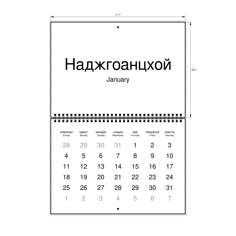 2026 Wall Calendar, Ingush-Labeled, Monday-Start Layout, Wire-Bound, 11.7 x 8.3 in (29.7 x 21.0 cm)
