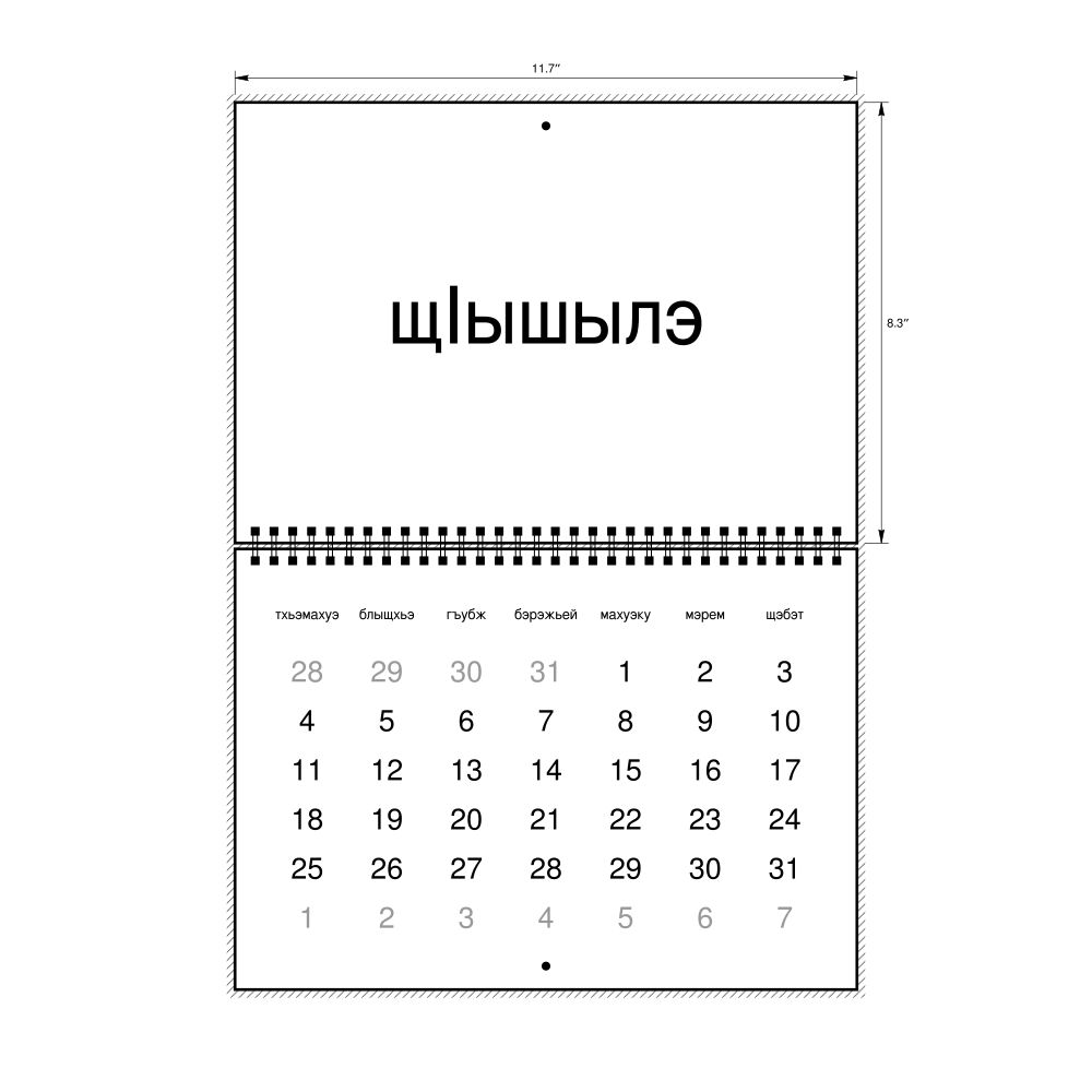 • Kabardian language learners and students - For individuals currently studying Kabardian, this calendar acts as a tool for passive learning and vocabulary reinforcement. It integrates essential Kabardian vocabulary into a daily visual environment and promotes retention through passive immersion and spaced repetition. Place it above a desk or study area to support immersion techniques.