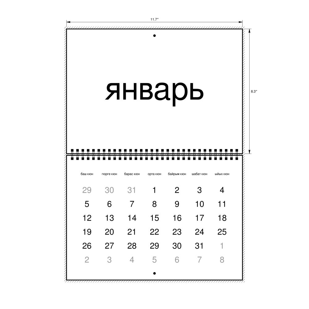 - Linguistics enthusiasts and polyglots - For "language geeks" interested in comparative linguistics or the mechanics of different languages and who value the aesthetic differences in scripts, orthography, and typography of different languages, the Karachay–Balkar calendar serves as an object of intellectual interest. You can collect calendars for various languages to compare their linguistic roots (e.g., comparing Romance languages vs. Slavic languages). Leskoff's calendars are characterized by specific typographic choices that highlight the orthography and script unique to the target language. Think correct usage of diacritics, characters, and directional writing (left-to-right vs. right-to-left). The minimalist design focuses on legibility and aesthetic appeal of the script itself.