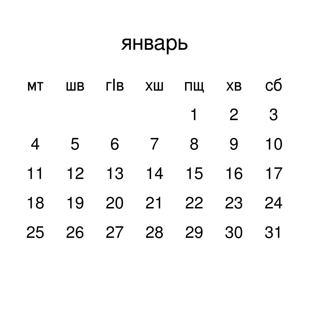 • Linguistics enthusiasts and polyglots - For "language geeks" interested in comparative linguistics or the mechanics of different languages and who value the aesthetic differences in scripts, orthography, and typography of different languages, the Abaza calendar serves as an object of intellectual interest. You can collect calendars for various languages to compare their linguistic roots (e.g., comparing Romance languages vs. Slavic languages). Leskoff's calendars are characterized by specific typographic choices that highlight the orthography and script unique to the target language. Think correct usage of diacritics, characters, and directional writing (left-to-right vs. right-to-left). The minimalist design focuses on legibility and aesthetic appeal of the script itself.