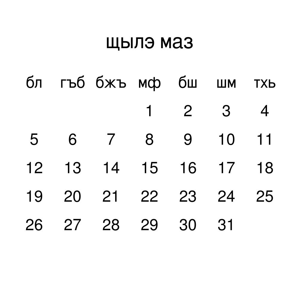 - Adyghe heritage speakers and cultural connectors - For individuals seeking to maintain a connection to their history, ancestral roots, or the culture associated with the Adyghe language, the calendar serves as a daily cultural marker. Use it in your home, office, library, or museum as a link to linguistic and cultural identity that integrates Adyghe into your everyday life. Familiar language script and naming conventions may also provide a sense of home in a foreign environment.