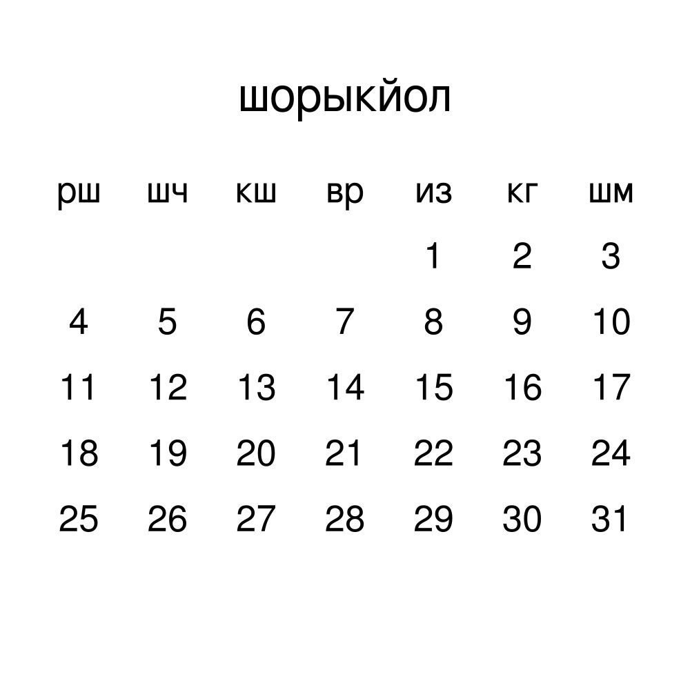 This calendar features the Mari names of months and days of the week on top of a standard Gregorian calendar layout. Beyond its utility for tracking dates, it serves as an educational tool, cultural touchstone (cultural artifact), and functional decor (aesthetic object).