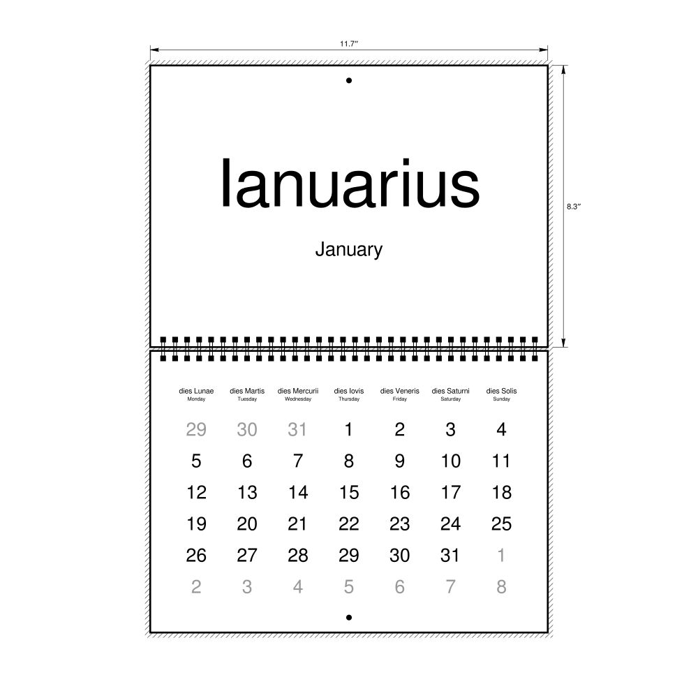 - Polyglots and autodidacts - For "language geeks" interested in the origins of different languages, classical literature, and scholarly pursuits and who value the typographic and aesthetic details of historical languages, the Latin calendar serves as an object of intellectual interest. You can collect calendars for various languages to compare their linguistic roots. The minimalist design focuses on legibility and aesthetic appeal of the historic and reconstructed words themselves.